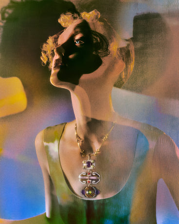 From the crux of civilization, the ancient form of the crescent emerges. With many layered meanings utilized endlessly throughout time, the symbol of the moon and heavens is formed beautifully in hammered gold and carved hard stones.